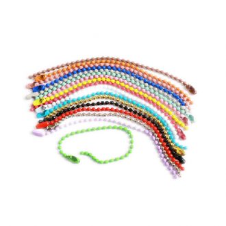 品名:2mm圓珠鏈 款式:隨機彩色珠鏈/銀色珠鏈 長度:約105~120mm 材質:金屬 數量:一包x10入 ※外層使用烤漆上色,隨著時間或使用方式有掉色之可能性。 ※每批珠鍊出廠長度會有不同,但不影響使用。