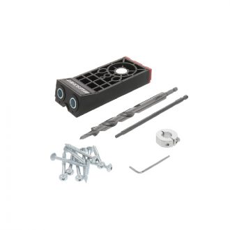 •可調節襯套塊可水平調節板寬,垂直調節板厚 •可拆卸的集塵口可在鑽孔時清除碎屑,讓您的工作台保持乾淨整潔 •方便的儲物抽屜,內置深度設置,可存放您的鑽頭、螺絲刀、螺絲 •全金屬底座,鑽孔上更加穩定 •使用微調夾緊墊,您可以微調您的夾緊壓力 •防塵口與標準 Shop VAC 2-1/4” 軟管和 Festool 32mm 軟管兼容 配件: .可拆卸防塵口、3/8” (9.5mm) 袖珍鑽頭 .6” (150mm) T20 驅動器 .帶扁平止動環 .3/8” (9.5mm) 開口環 .40 個口袋孔螺絲 .六角扳手
