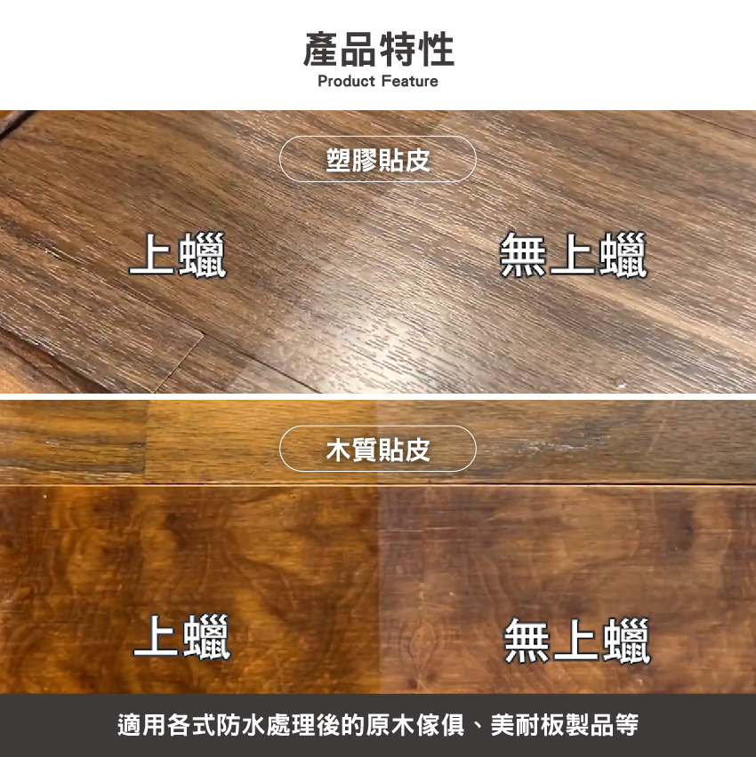 適 用:各式經防水處理(面漆/底漆)後的原木傢俱、美耐板製品等…