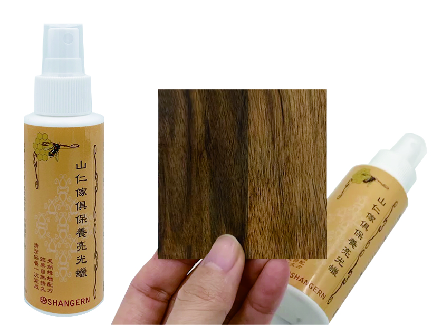 針對各式傢俱保養開發,採用德國蜂蠟及巴西棕櫚蠟等天然成份與全新亮光劑結合,水霧式噴劑使用便利,效果明顯持久,使用後表面不油膩,不含易燃石油氣,對人體、材質、環境都無傷害,是最安全的保養品。