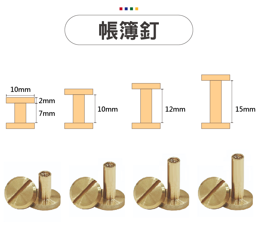 帳簿釘 | 公母螺絲釘 | 空心釘 | 公母釘 | 文具扣 | 子母鉚釘 | 中孔釘