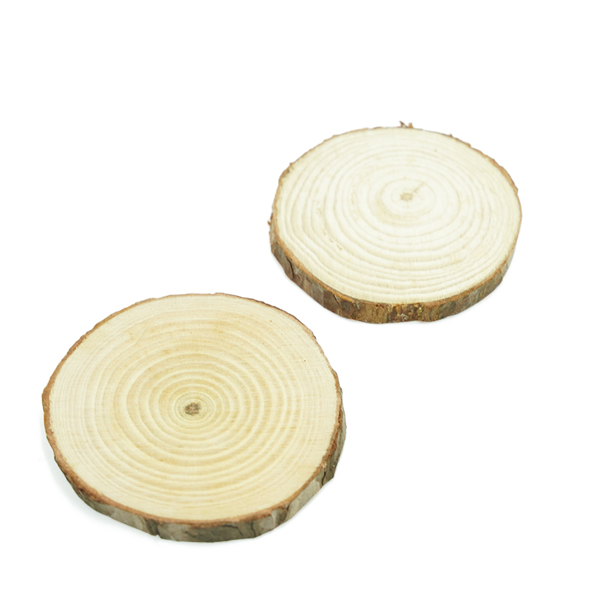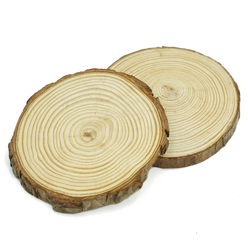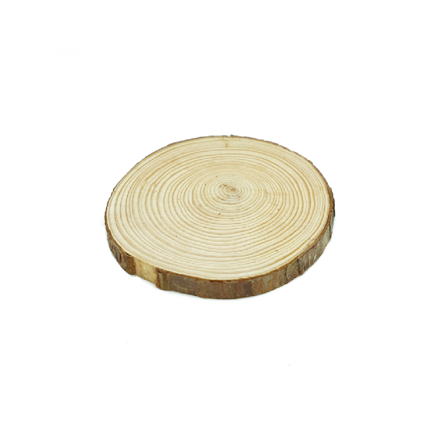 品名:年輪圓木片 款式:圓型 材質:松木 厚度:10mm 數量:1入 規格:直徑約11~12cm 備註:此商品為天然木材加工製成,邊緣木皮如有脫落皆為正常現象。