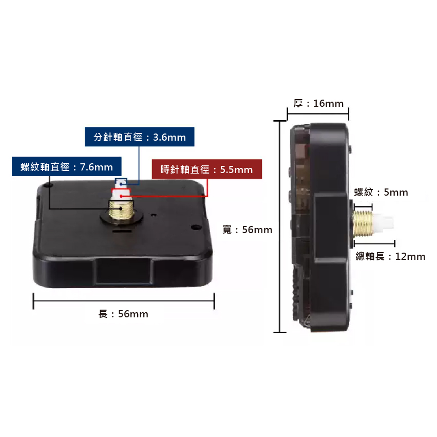 機芯尺寸:5.6×5.6×1.6cm
