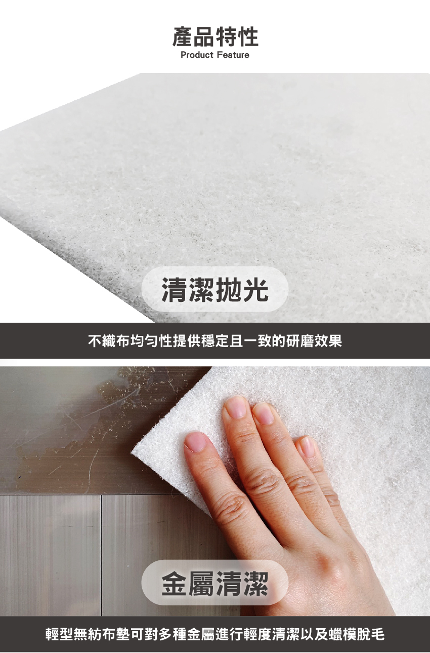 .輕型無紡布墊可對多種金屬進行輕度清潔以及蠟模脫毛
