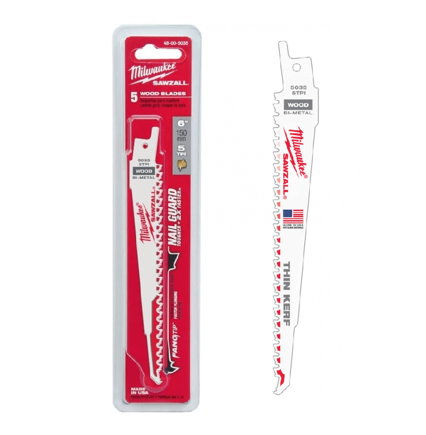 美沃奇 Milwaukee 木材切割 6″~12″ 軍刀鋸片 (5入)