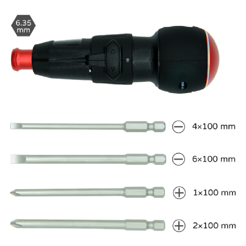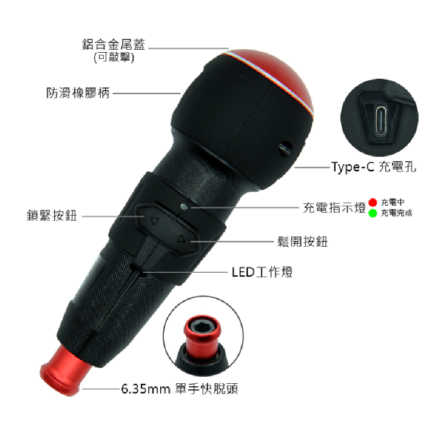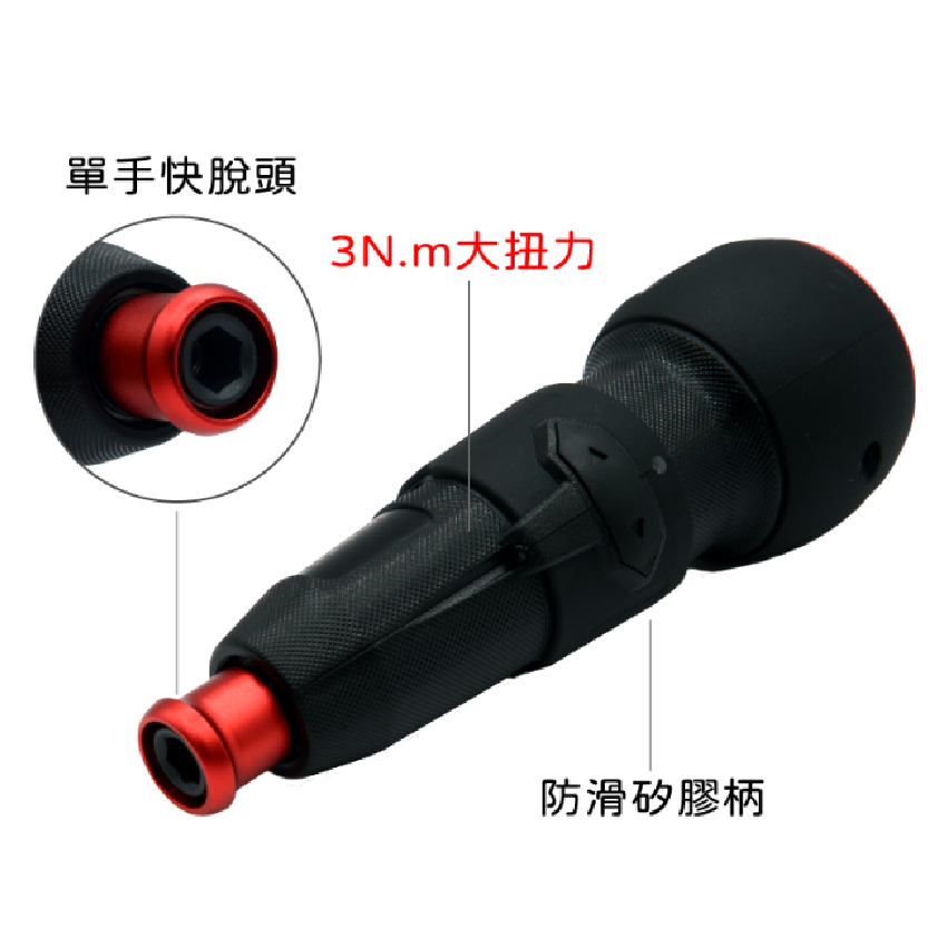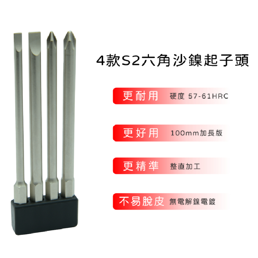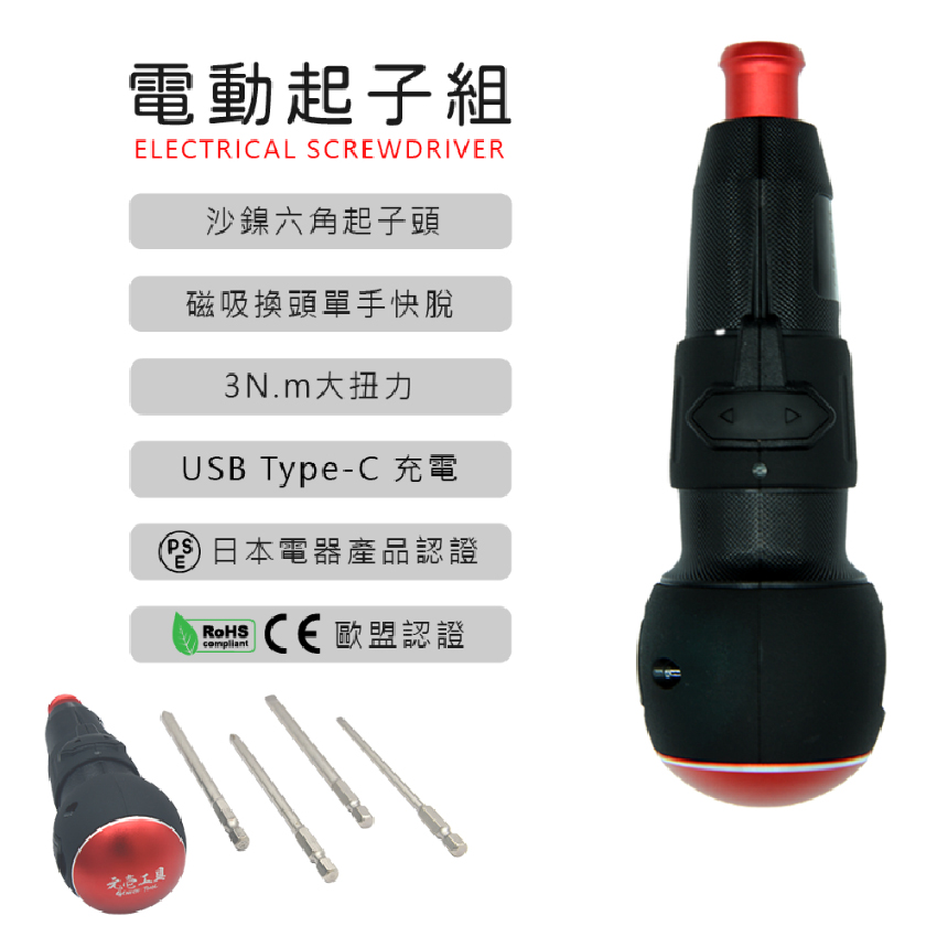 產品內容:電動起子、4款S2六角起子頭、充電線