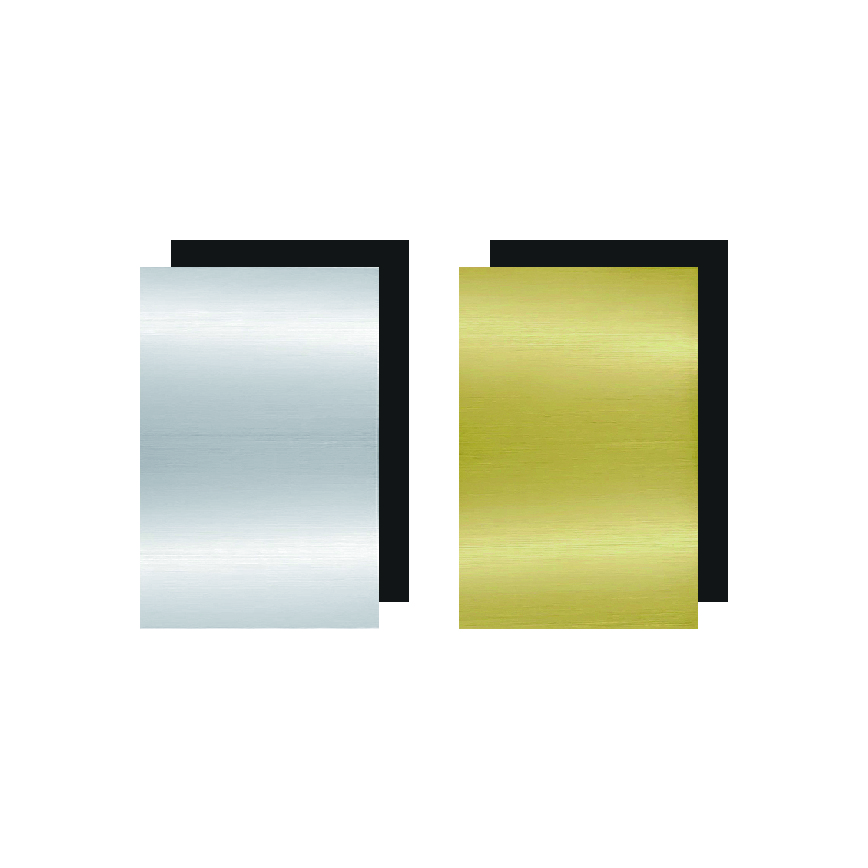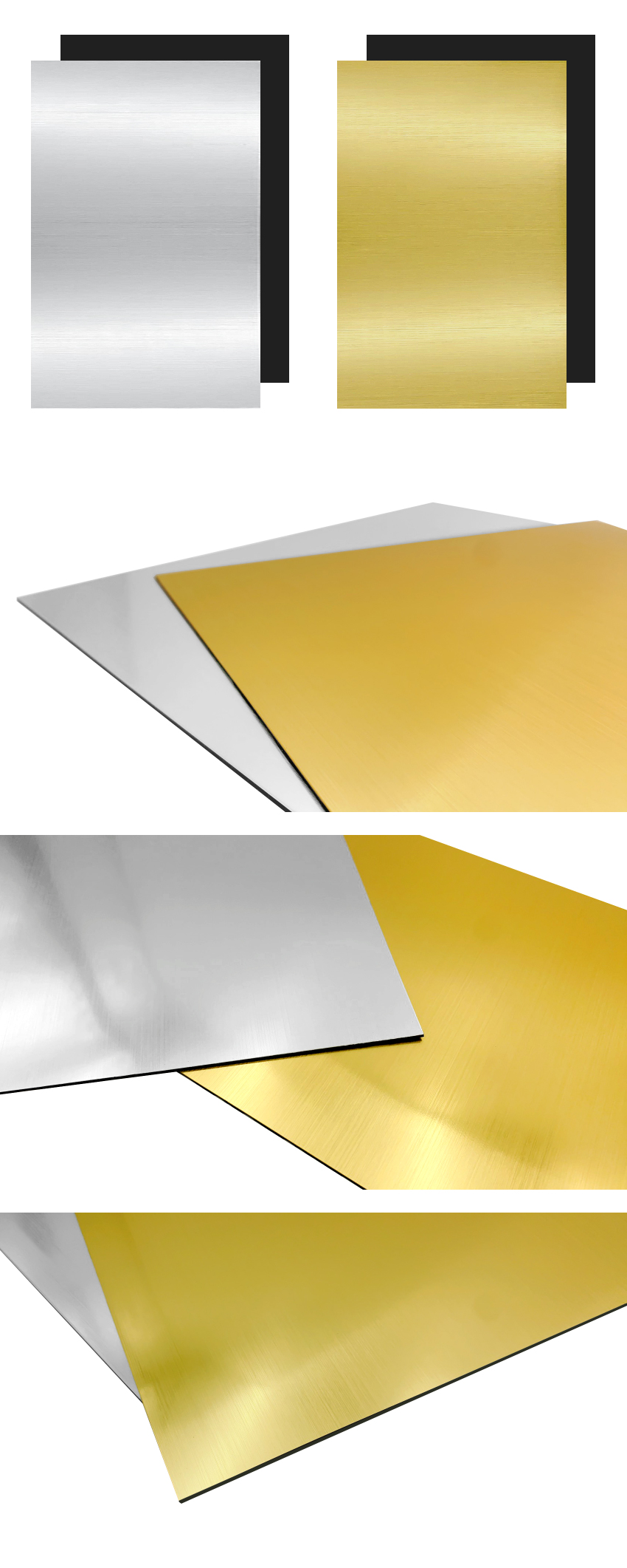 ABS板材是Acrylonitrile Butadiene Styrene丙烯腈—丁二烯—苯乙烯聚合物,取開頭字母A、B、S,稱為ABS材料,ABS常用於機車車殼等工業塑膠零件,具有性能穩定、耐熱耐衝擊等特性,而木百貨新推出的ABS雙色板,是將ABS板材上色加工(金色、銀色),表面色層厚度≤0.2mm,使用CNC設備/CO2雷雕設備/二極體雷雕設備,可輕鬆雕透表面色層,透出下層顏色,易於加工、成品尺寸穩定等特性,近年來更是倍受建築裝潢裝飾、展覽展示、廣告製作、標識製作等行業廣泛應用。