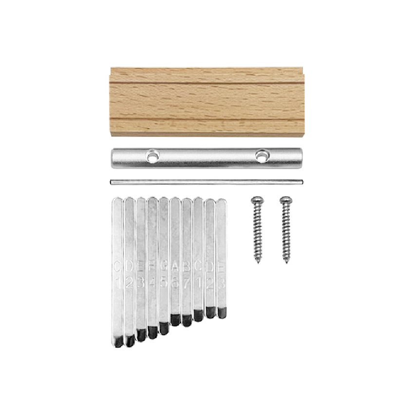 10音琴鍵 ※此款式新舊款式隨機出貨! 【舊款】內容:彈片x10+壓條x1+鋼芯x1+螺絲x2+四腳螺絲x2+枕木x1 【新款】內容:彈片x10+壓條x1+鋼芯x1+螺絲x2+枕木x1 重  量:47g/套 琴鍵寬度:5mm