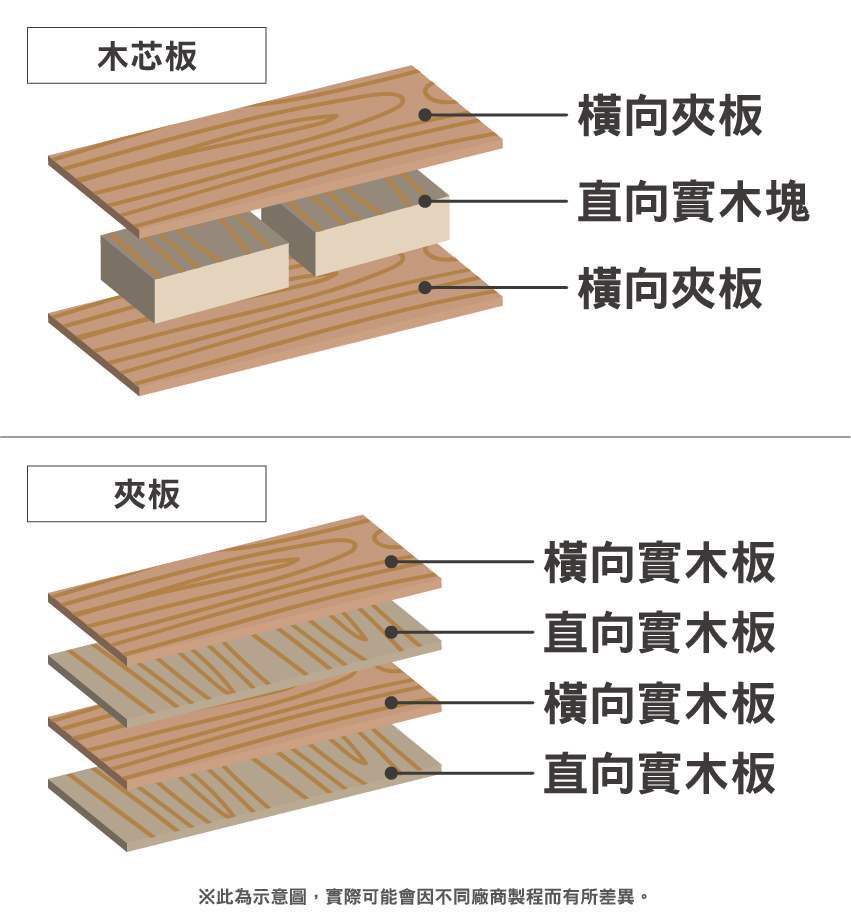 木材容易在開封後因溼度.氣溫改變而翹曲或是厚度有±0.5mm的誤差