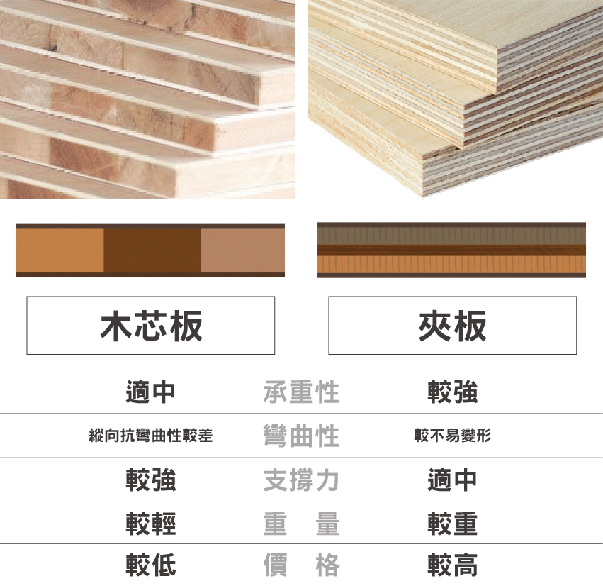 .結構:上下兩層為薄木片,中間則以實木條拼貼而成