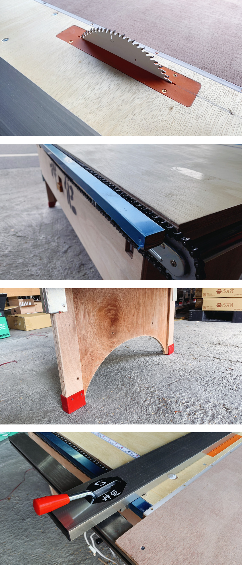 3×6尺木工鋸台, 3×6尺木工鋸台+溝切機, 3×6尺木工鋸台+溝切機+滾輪架, 3×6尺木工鋸台+修邊機孔, 3×6尺木工鋸台+易操輪, 推料桿+立體角度輔助器