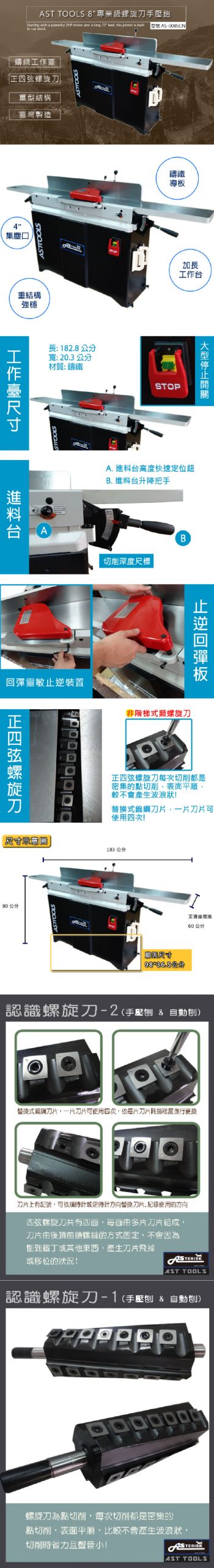 ASTTOOLS主晟 AS-008SCN 2HP 8″ 專業級螺旋刀手壓鉋