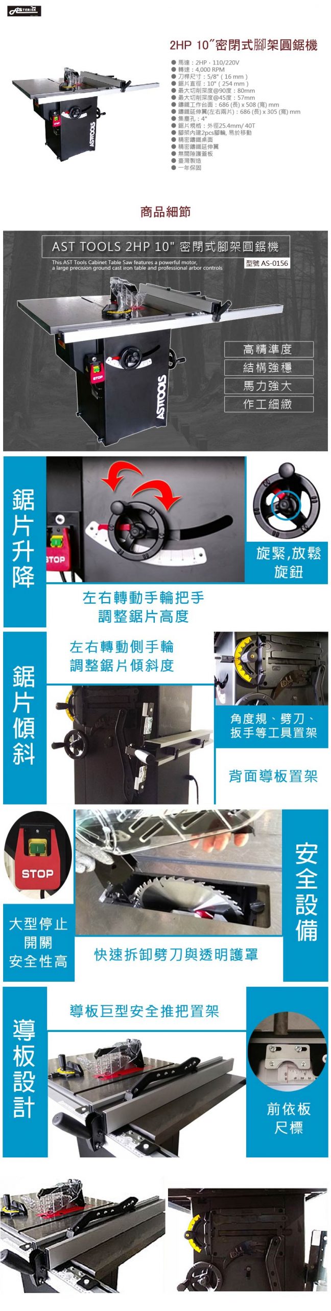ASTTOOLS 主晟 AS-0156 2HP 10吋 密閉式腳架 圓鋸機