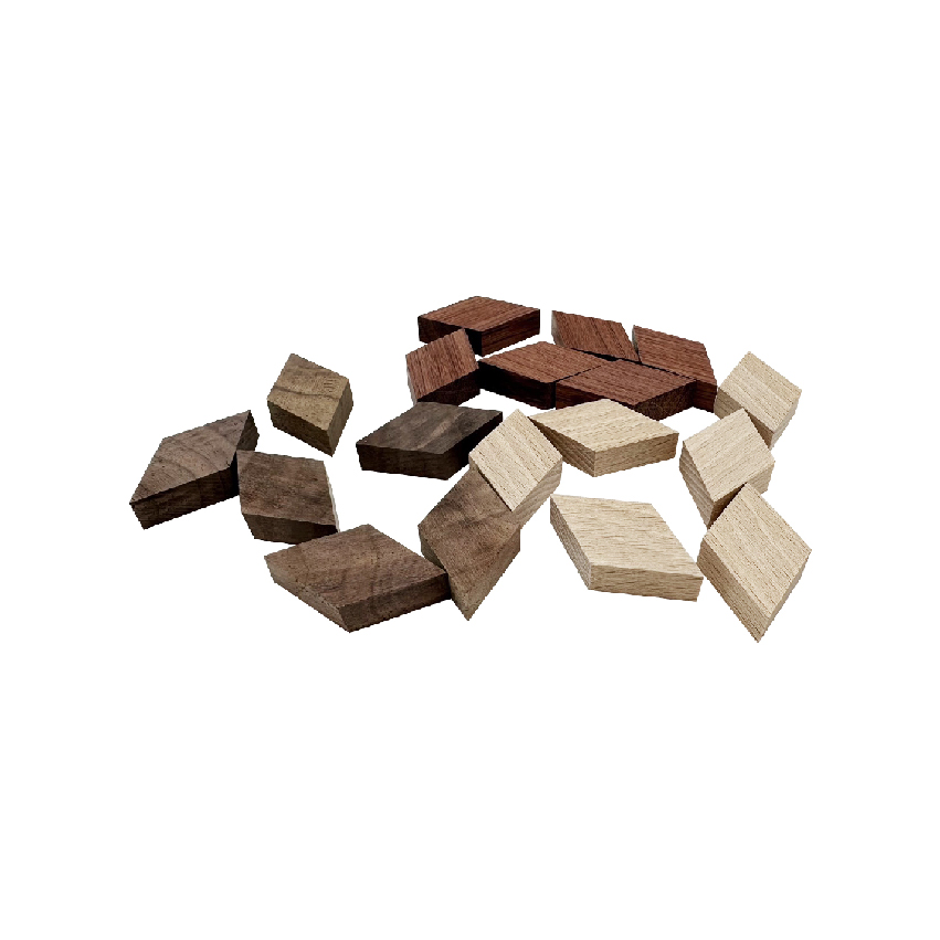 品名:DIY拼貼實木塊 材質:三種實木各六片(※款式隨機) 尺寸:約1×2.5×4.4cm 數量:共18片 備註: ※木材是自然生長,木紋和木節是無法避免的 ※部分商品會有些許毛邊 ※因加工時會有公差,拼貼時邊緣可能會有縫隙 ※木材本身多少有特殊紋理,無法挑選款式