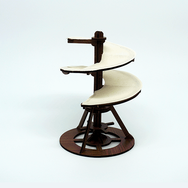 這個工作模型有一個在支撐結構上旋轉的頂篷,展示了達文西認為飛行可能的方式!
