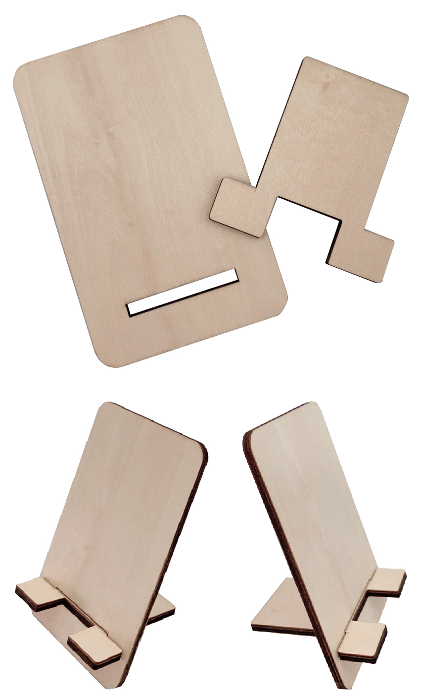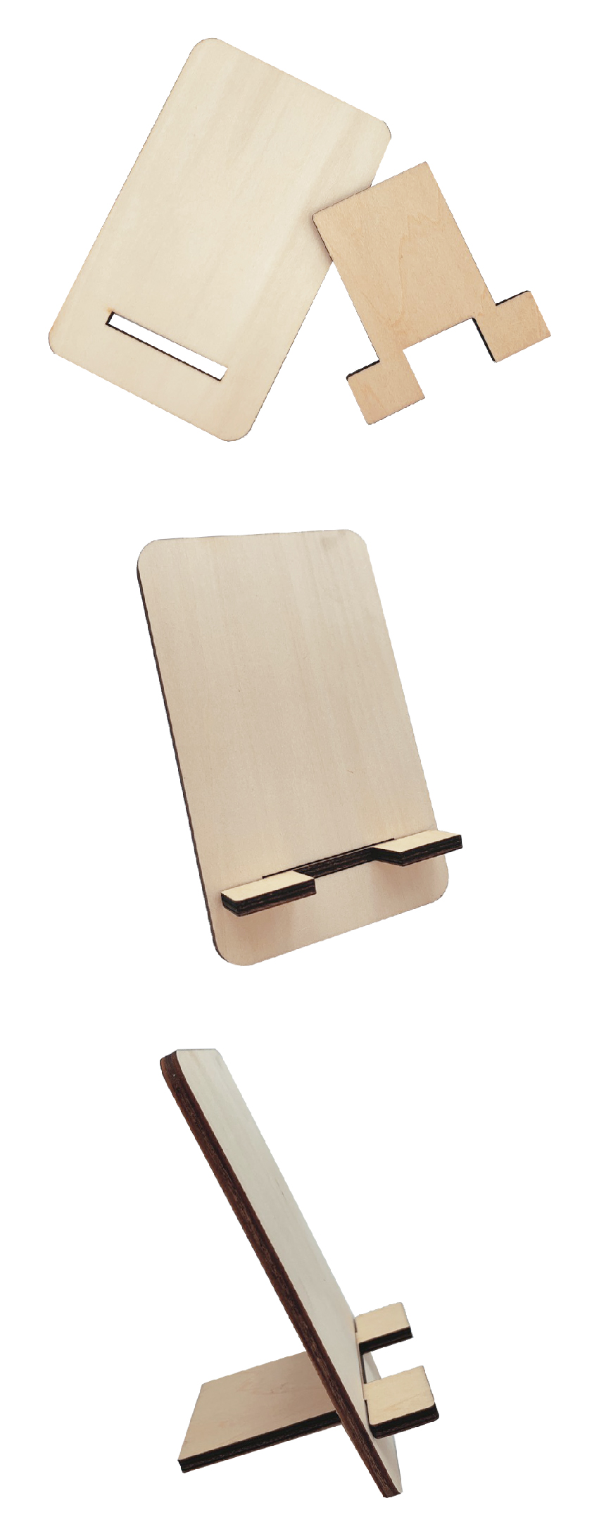 利用簡單的卡榫結構搭配雷射雕刻機製作出手機座的雛型,挑選喜歡的圖案,