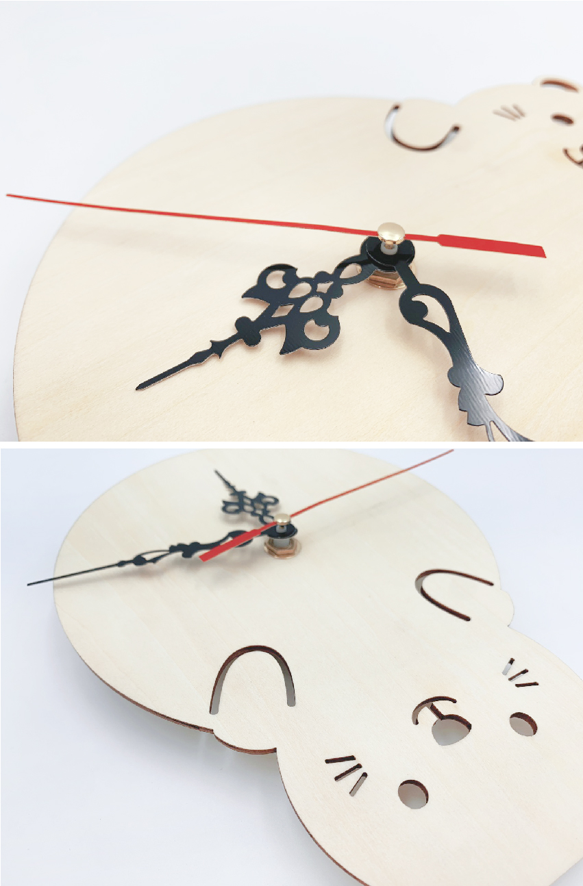 使用準備好的療癒系列動物掛鐘模版,可以動手設計時鐘上的數字樣式,而雕刻與切割所呈現出的效果是很不一樣的唷!