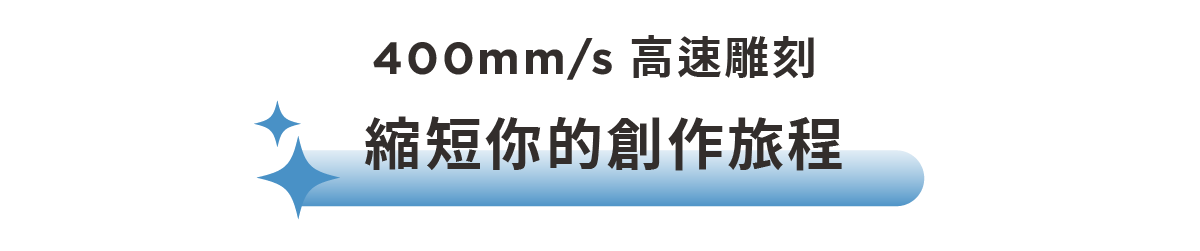 最快雕刻速度可達 400mm/s (24,000 mm/min),讓你花更少時間,完成更多創作!