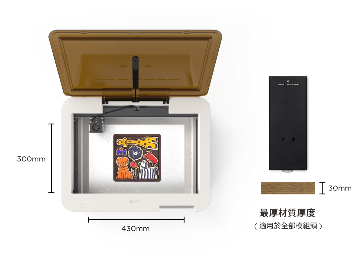 Ador 配備 430mm x 300mm 寬敞工作空間 工作區域深度達 3 cm(30mm)創作面積不設限!