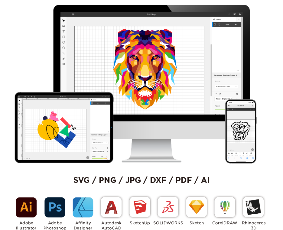 支援檔案格式:SVG/DXF/JPG/PNG/AI/PDF等