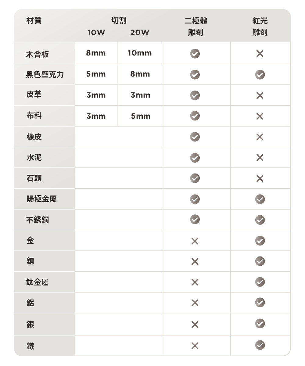 Ador 配備 10W / 20W 高品質二極體雷射模組 協助創作者依循創作需要,同時完成雕刻與切割需求。