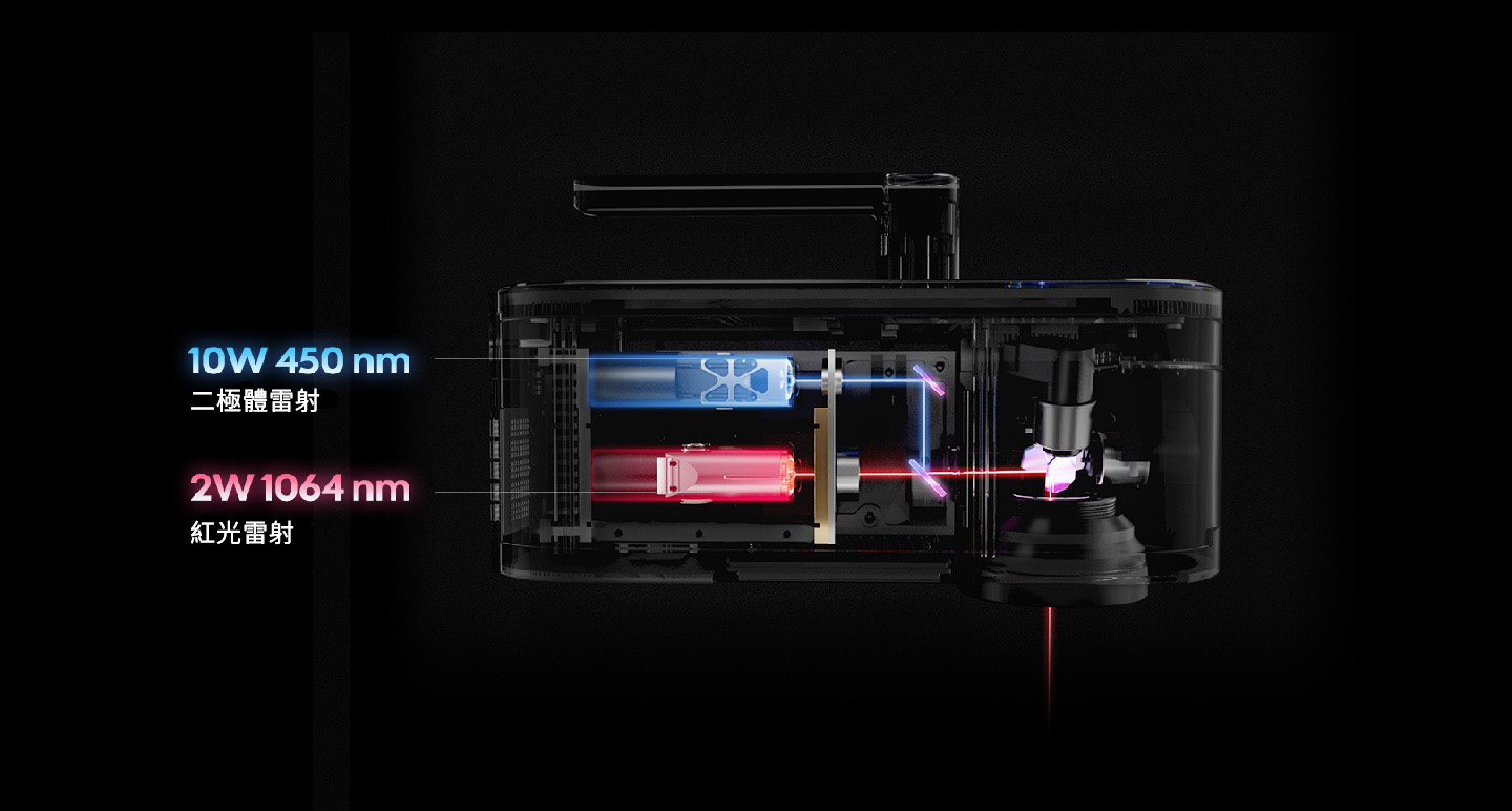 蜂鳥4結合了兩種雷射光源,幾乎在所有材質上都能進行雕切