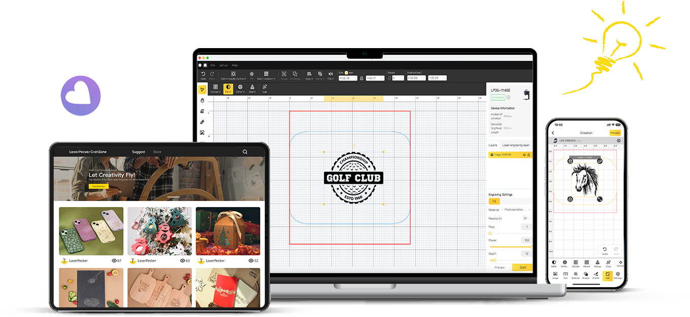 蜂鳥四代的輕巧便利,讓你的雷雕專案不再受到位置的限制。無論是在現場、工作室或戶外工作,這款緊湊型便攜式雷射雕刻機都可以讓您在最能激發靈感的地方創作。