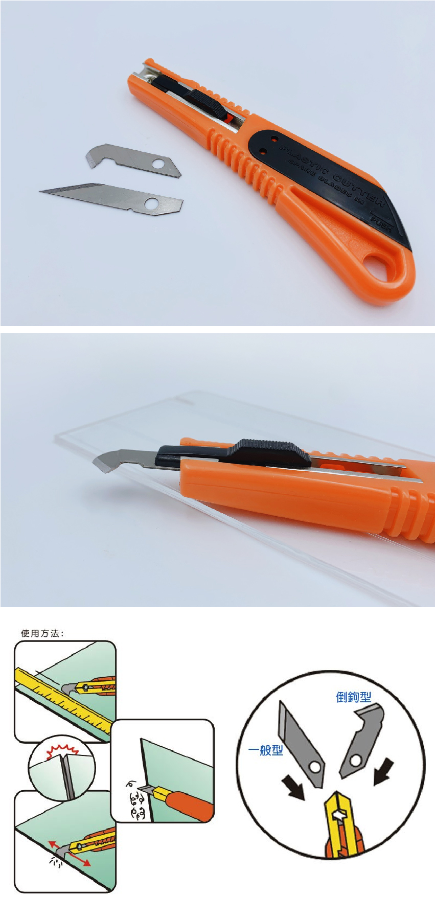 特色:可換式刀片,倒鉤造型方便切割