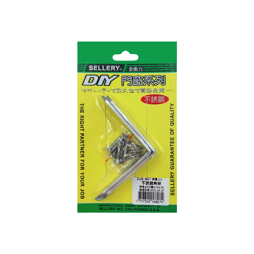 SELLERY 舍樂力 16-807 不銹鋼角架 65mm(2入)