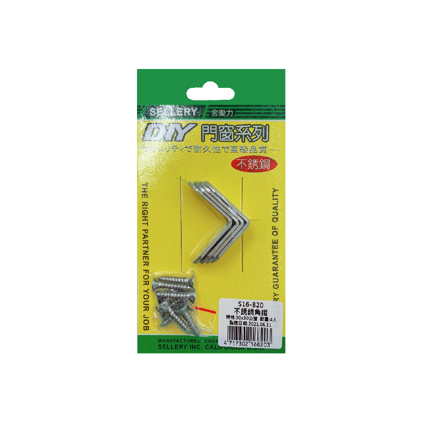 SELLERY 舍樂力 16-820 不銹鋼角鐵 30mm(4入)