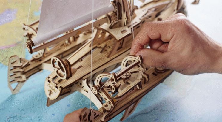 桅杆上的主帆和前帆可以展開或是捲起,同時能調整方向