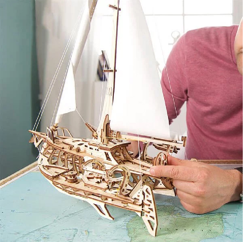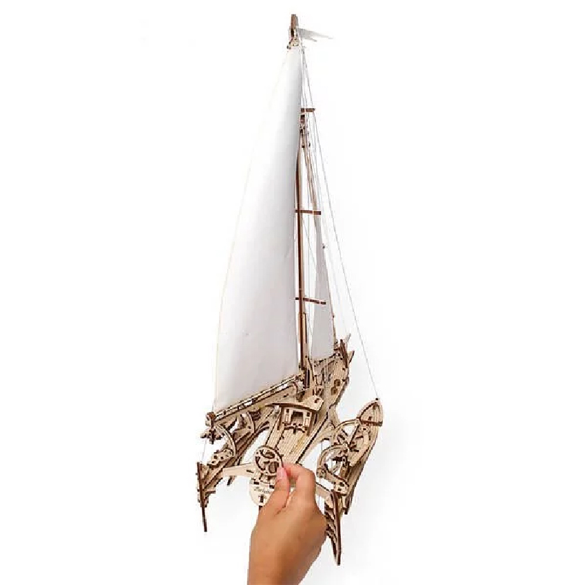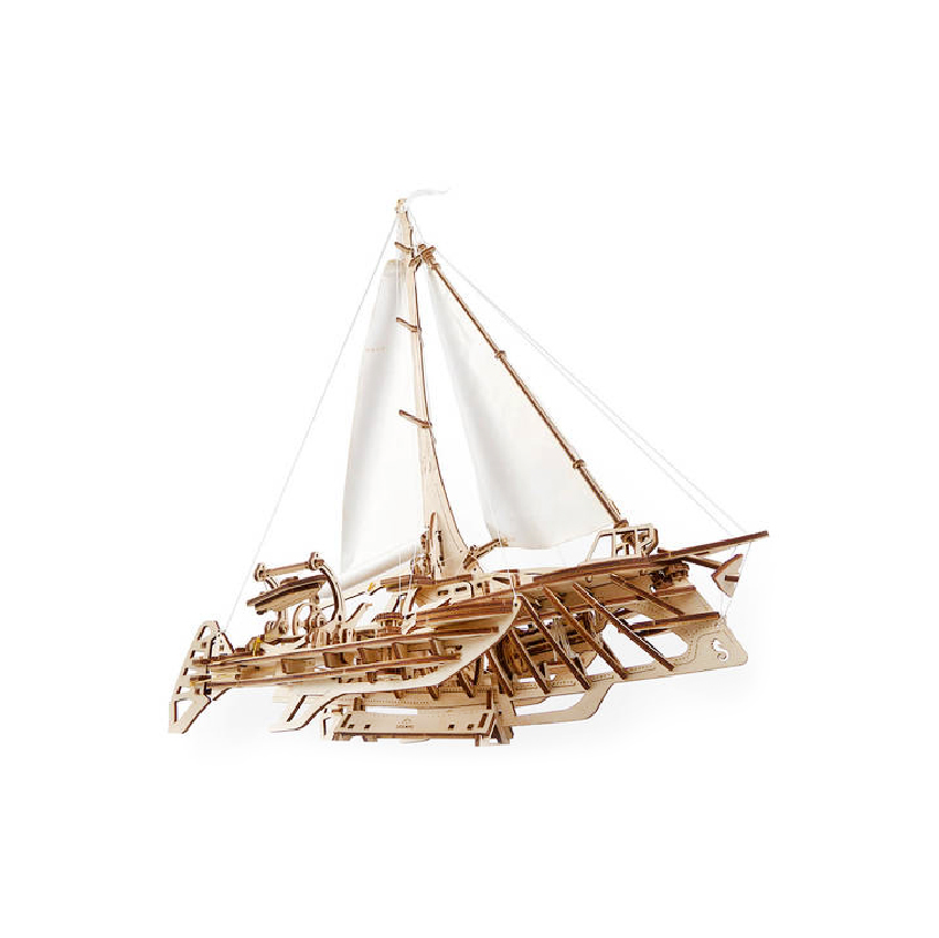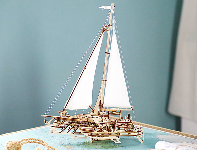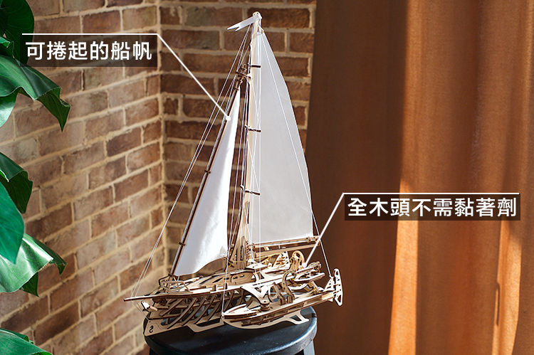 將帆船以骨架的方式呈現出來,可清楚看到三體船的結構