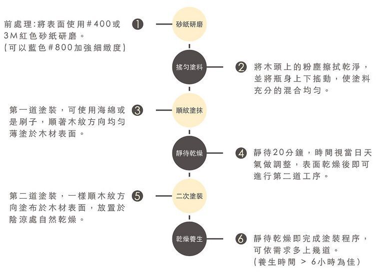 一瓶即可完成上漆程序,不須多道砂磨,方便簡易。