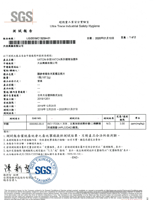 經台灣SGS檢驗不含甲醛、甲苯、二甲苯。塗料不具熔劑味,無論於何處均可安心使用。